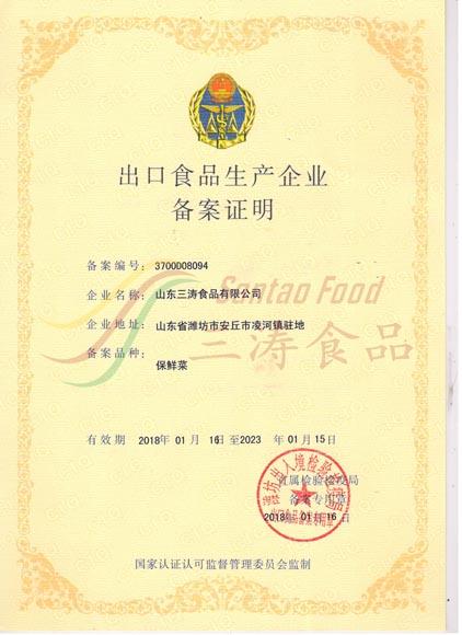 保鮮菜出口備案證明
