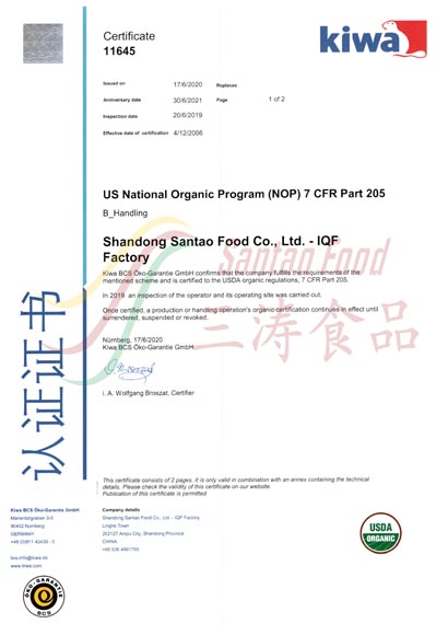 IQF加工廠有機認證